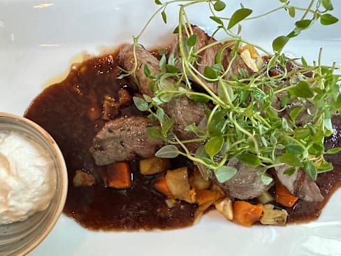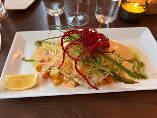 10/10Warm, delightful, helpful and friendly service. Tasty food - we had the lamb and the cod. Fine wine to pair with the food. We will return.