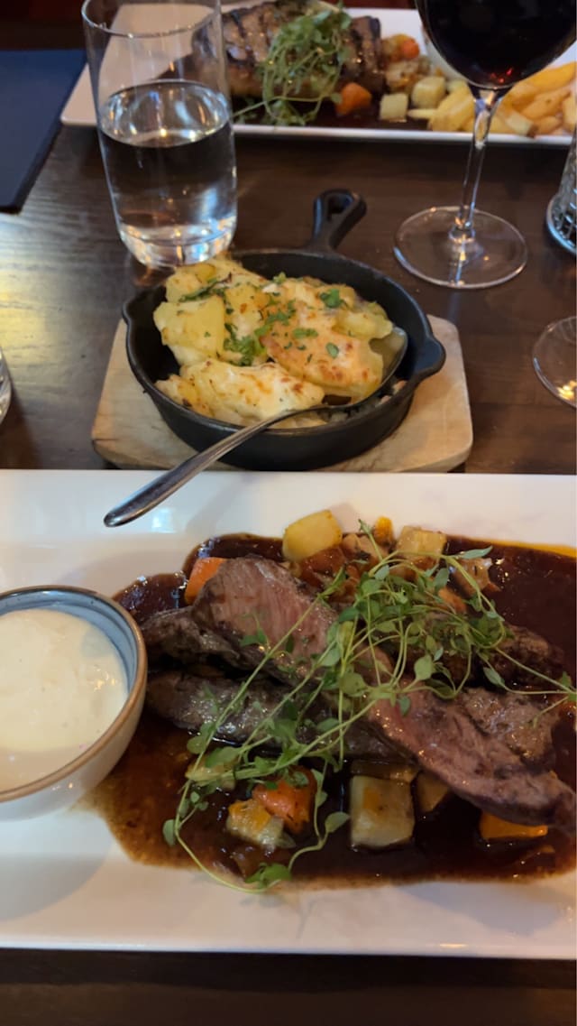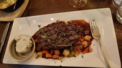 7.5/10Food was good, but not excellent. Steak was cut to thin and I was not 100% sure if it was really 250gram 🙃 Service was fast. Ambiente ok. Restaurant only had one toilet waited to long.