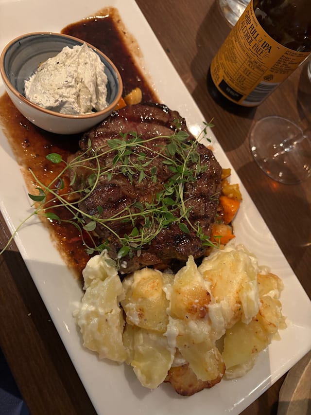 10/10I had an amazing dining experience at Bryggans Kök & Bar in Stockholm! From start to finish, everything was perfect. We started with the garlic bread – freshly baked, perfectly crispy on the outside and soft on the inside, with just the right amount of garlic and herbs. Absolutely delicious! For the main course, I had a steak and pasta, and both were outstanding. The steak was cooked exactly to my liking – tender, juicy, and full of flavor. The pasta was rich and satisfying, with a perfectly balanced sauce that complemented the dish beautifully. The staff were friendly, attentive, and made us feel welcome from the moment we arrived. The atmosphere was cozy yet modern, with a great vibe and beautiful views. I highly recommend Bryggans Kök & Bar to anyone visiting Stockholm. Whether you're looking for a casual meal or a special night out, this place will not disappoint!