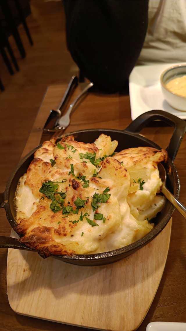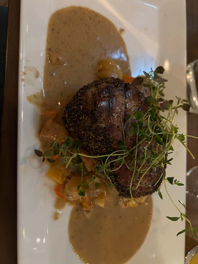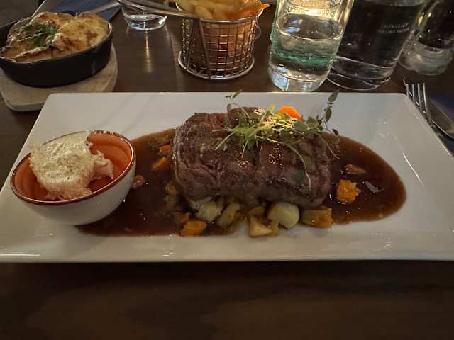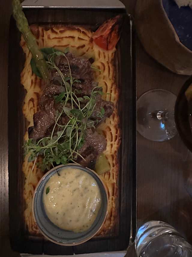 - Finskuren oxfilé, ostronskivling, purjolök, cocktailtomater och grädde. Parmesan och basilika.