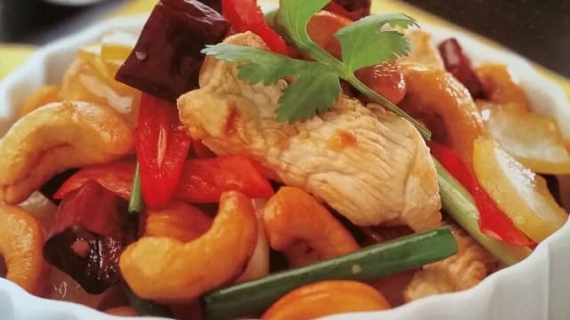 Kai priow wan (plato tradicional Thai con pollo salteado con anacardos,verduras y salsa de soja)