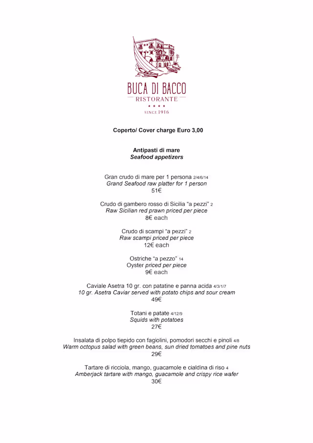 Buca di Bacco 1916 is rated 9.2/10.TheFork users have rated accordingly in the following categories: