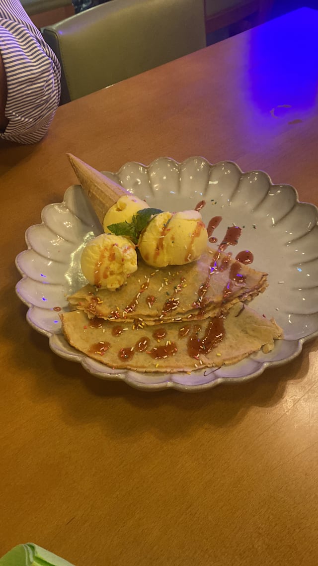 7/10The service was attentive and welcoming, which made for a pleasant experience. The location is great, adding to the restaurant’s appeal. As for the food, the shrimp tacos could have been more flavorful and juicy, while the beef burrito was decent. The strawberry crepe didn’t quite match the menu picture but was still enjoyable. On the bright side, I really liked the mint lemonade! There’s definitely room for improvement, especially in the food’s consistency. Also, adding paper towels in the restroom would be a great touch, as the air dryer is quite loud. Thanks, and looking forward to seeing how the experience evolves!