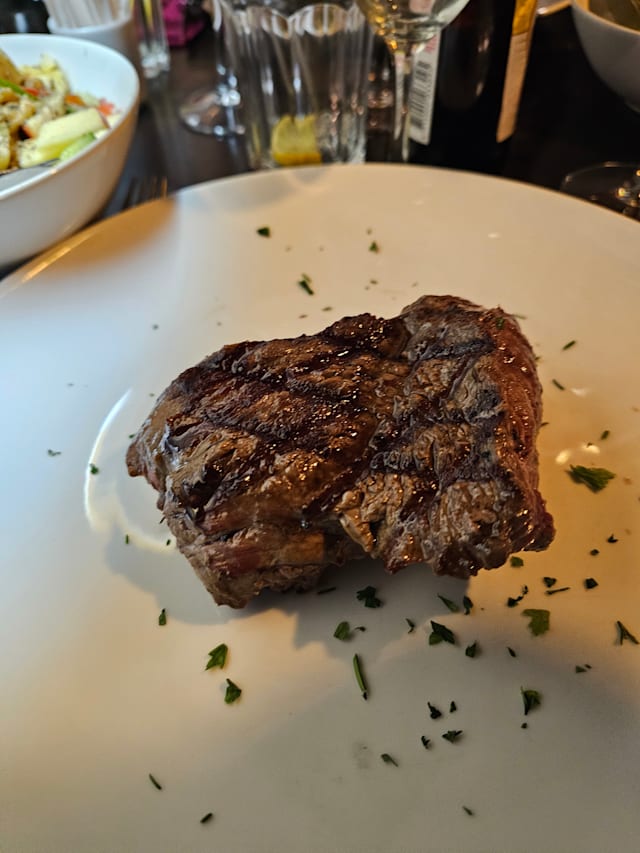 8.5/10Food was good, enjoyed a t-bone. Friendly, though inatentive service. Downside of getting a really small table, where the food could barely fit.