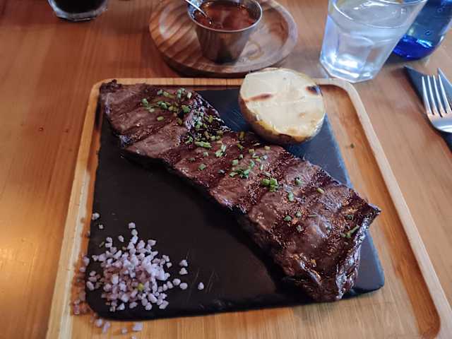 9.5/10Booked based on reviews & not disappointed. The waitress was very welcoming & offered us good advice on how well to have out steaks cooked. Overall a very good experience.