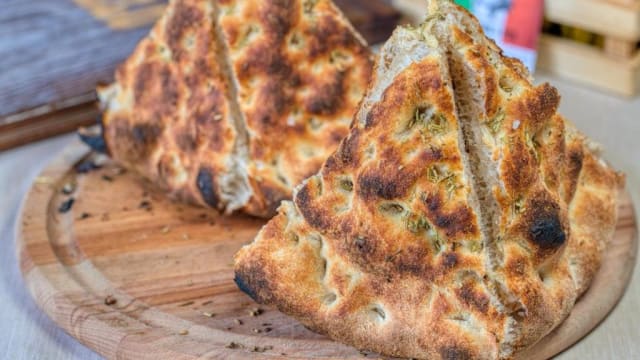 180 gr. hamburger di manzo, pan brioche, insalata, pomodoro, cappuccio rosso, formaggio monte veronese e cipolla caramellata, servito con patatine fritte