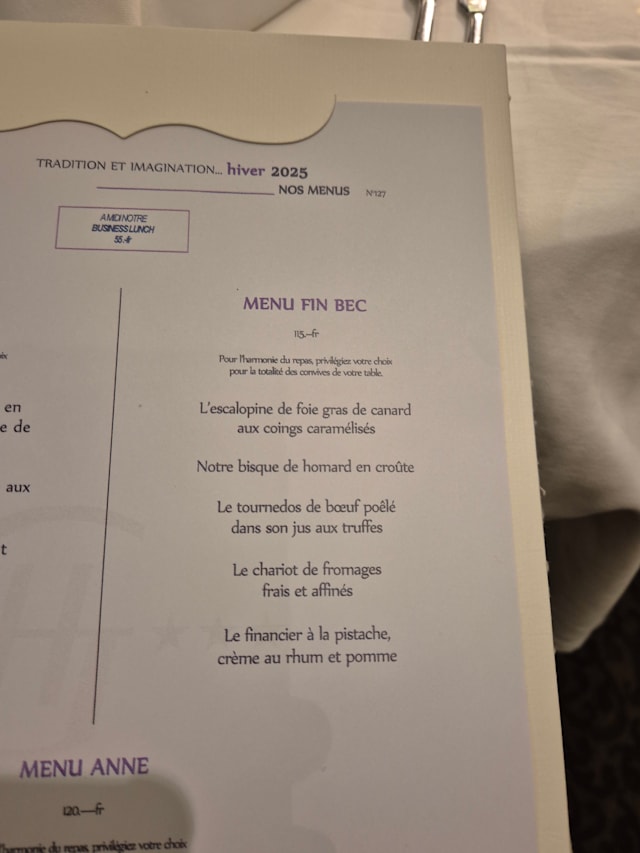 10/10Great food and service as always . Menu is a decent price for the quality of the food you get . My only recommendation is that they change their carte more often as , as a regular customer , I’d like to see more options during the year . . Besides that , a lovely meal as always.