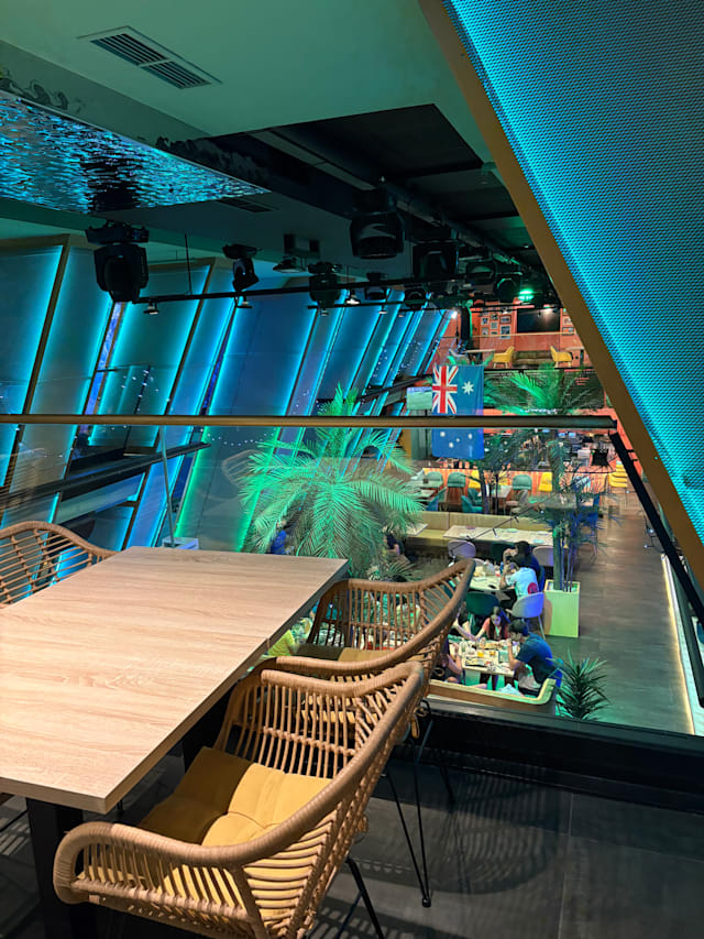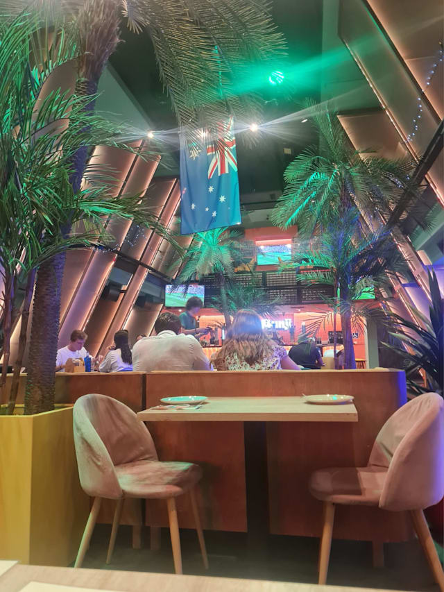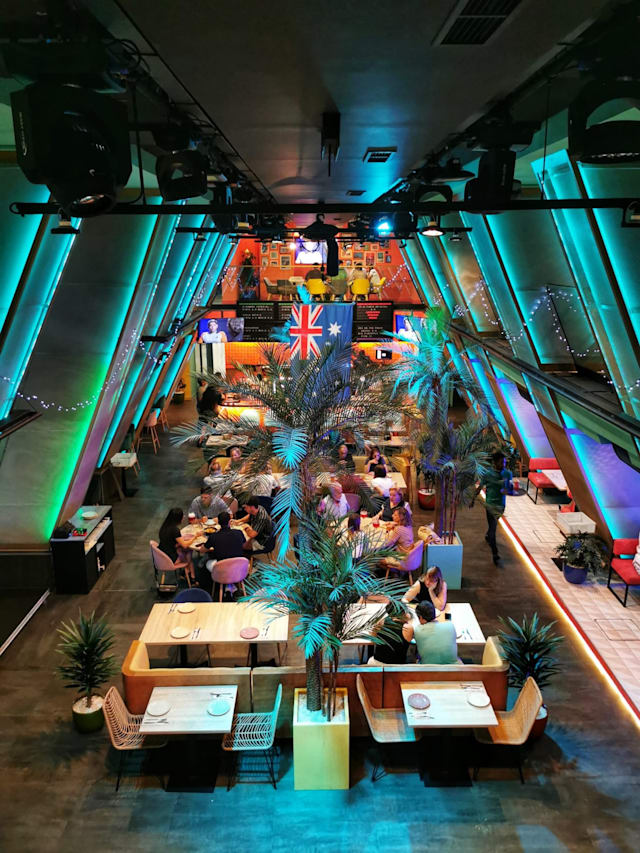8/10Great underground or should that be 'down-under' venue with a nightclub canteen feel. Food not too bad either and reasonably priced, served by efficient friendly staff. Like an Aussie boomerang I will return!!