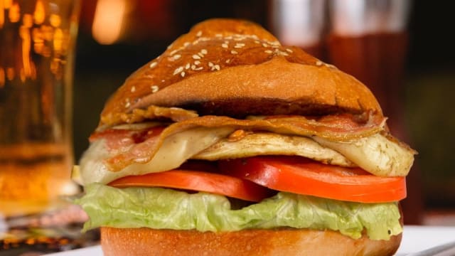 hamburger di manzo 100% italiano da gr. 200, uovo fritto, pomodoro, insalata, lamelle di grana, olio tartufato
