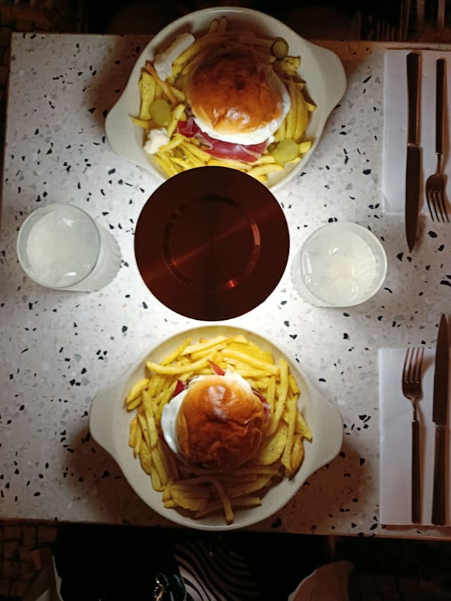 Carne 100% black angus (160g), queijo flamengo, fiambre. Salsicha fresca, linguiça, ovo e molho francesinha