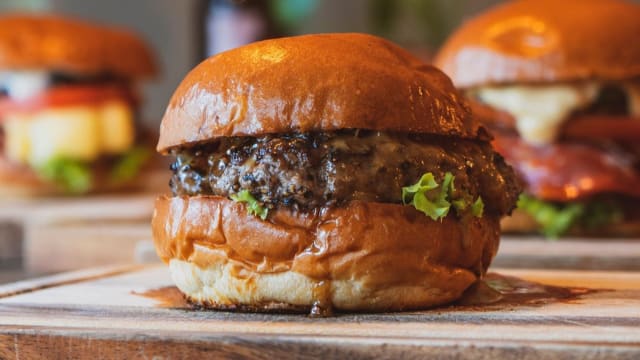 Lettuce, tomato, pickles, crispy onion with bbq sauce