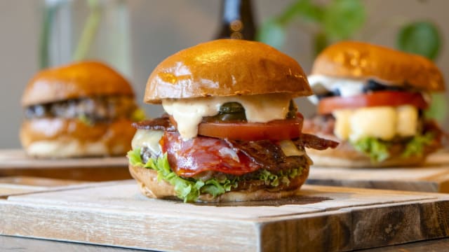 100% plant based burger with soy and seaweed for extra flavor. the weed-sauce is a vegan zesty cream based sauce enriched with real dutchsea lettuce. topped with salad, beef tomatoes, caramelized onion and pickles.