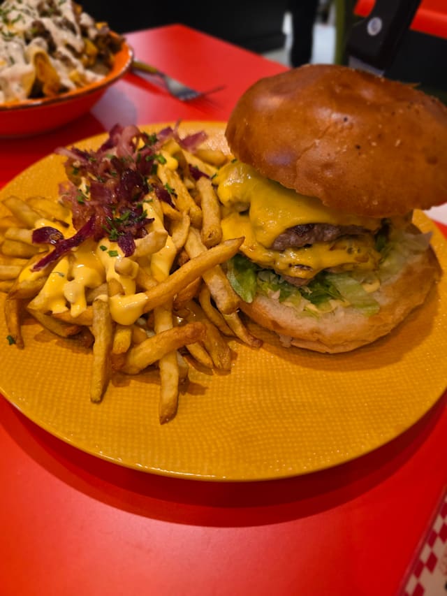 9.5/10The burgers are amazing and very cheap. The service is great, all of the staff very friendly and helpful. The fries come in a veryyyy large portion. The place is small but cosy, especially since they put christmas decorations. Very good experience, i recommend for burger lovers!