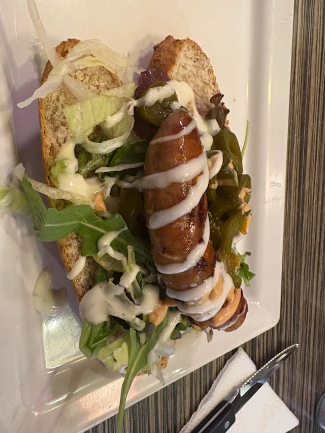 6/10Tasty Choripan Argentinian sausage sandwich but the sausage was rather small and much smaller than in the menu photo. It took about half an hour to arrive for good reason - everything is freshly cooked to order in an open kitchen.