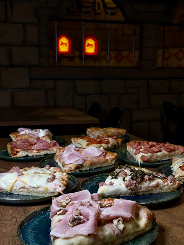 Pomodoro, mozzarella fior di latte, coppa piacentina, funghi champignon e scamorza