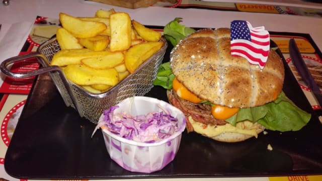 6/10Although the restaurant itself is nice looking, the food quality was far from amz I took the wings and it was plain tasteless fried chicken. The fries at least were homemade. My wife did not appreciate her burritos, nothing was actually good for her either... too bad...