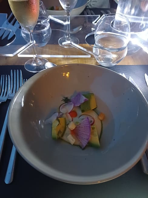 7/10This is a great concept and efficient way to see Paris. Dinner was fine. We did not care for the starters and would have appreciated options. Obviously this is on a bus with limited space, so we politely waited in hopes the menu might change for the better; things turned around at the main course. The real struggle of the tour was the app and trying to set it up where GPS would automatically advance the guide between the 19 different locations we were set to see. We were frustrated not knowing what we were looking at or that we were even there most of the dinner. Communication seemed to be lacking on this tour, and those that purchased the wine package received the better service. Servers were pleasant, but I can't say anyone went out of their way to make us feel welcome or even converse with us. We appreciated the brief stop in front of the Eiffel Tower just as lights came on at the top of the hour. I would recommend the tour to friends.