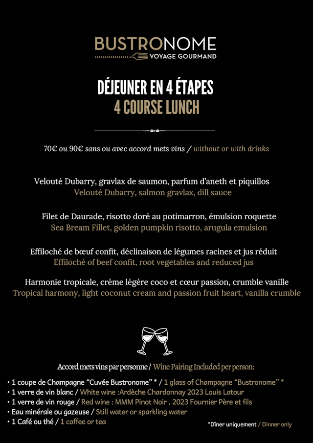 5/10We had a good time, seeing Paris at night by bus. However the service could be improved upon. I had also contacted Bustronome a few days prior to our dinner to confirm I required a strictly gluten free meal, as am a coeliac. For every course I needed to remind the waiter that I required gluten free, as give normal bread rolls were given, a dish with a gluten containing crumble etc. It wasnt a very relaxing experience as a result.