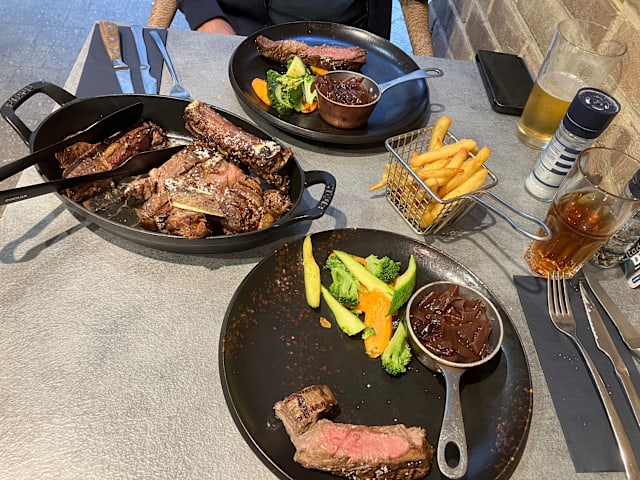 5.5/10The plate to share didn’t contain 3 different sorts of special ham but only 2 and ober didn’t yell is anything. My steak and sauce were cold, the chef forgot to warm it ip!! I gave it back to warm it jou and it was all dry afterwards. And still the old fries instead of giving me New warm fries.
