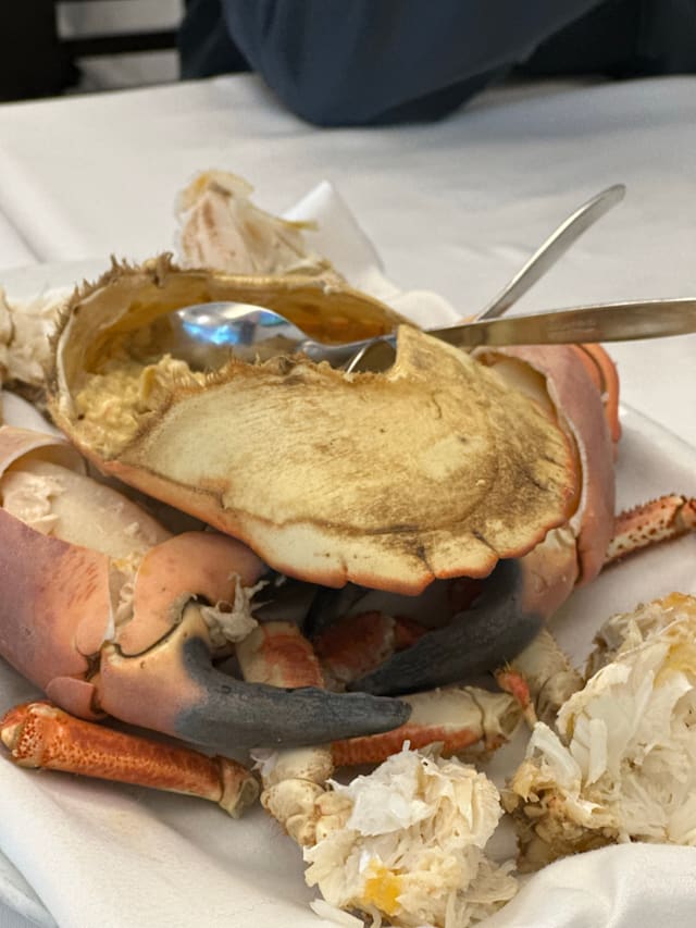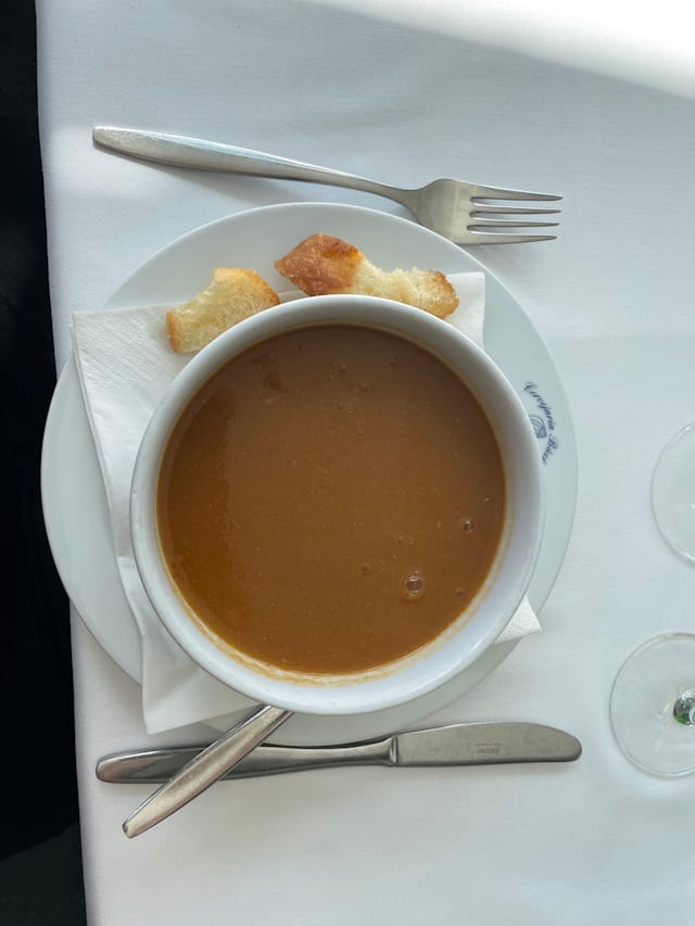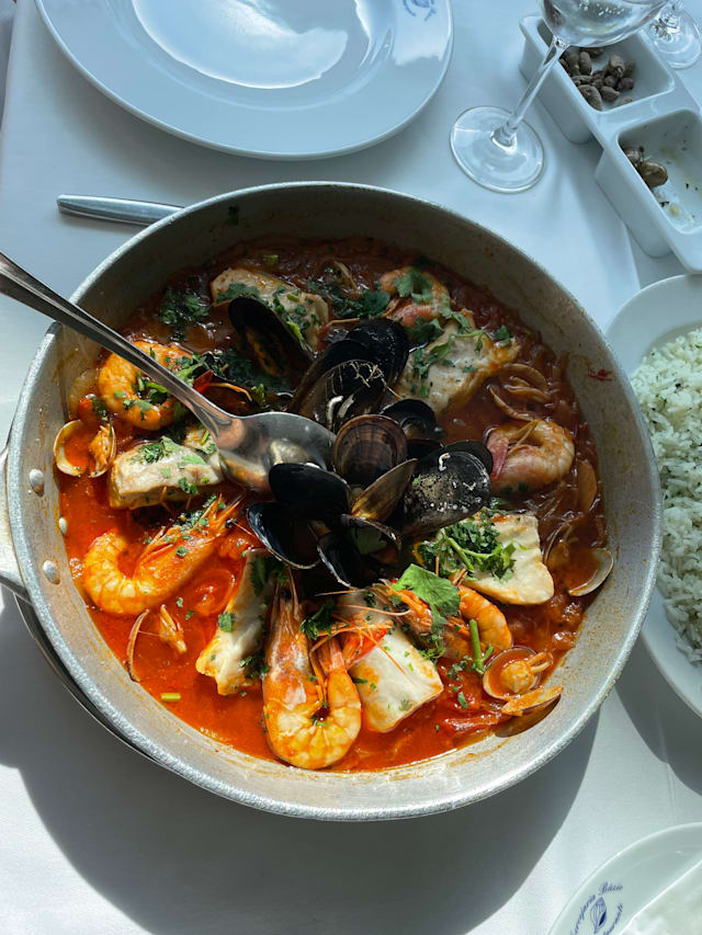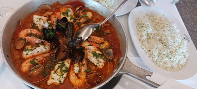 8.5/10Best shellfish soup ~6€ and shellfish stew for two 45€ excellent. Service great to start, owner showed us his tank with huge crabs and lobsters but coffee took 20 minutes to arrive after we ordered it.