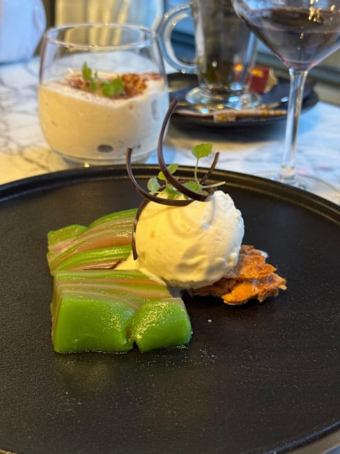 4.5/10very limited choice of dishes. the starter was excellent, the risotto extremely salty and the dessert just an ordinaryice-cream not worthing 9.5euros. Very disappointing meal.