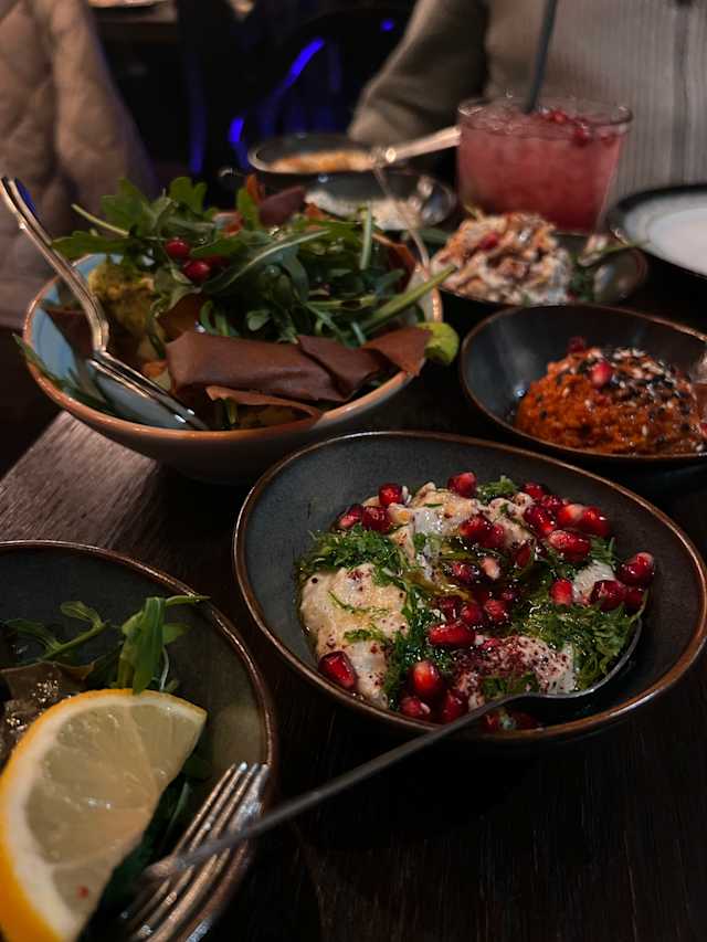 - Ett urval av libanesisk meze med en mix av friterad fisk från medelhavet