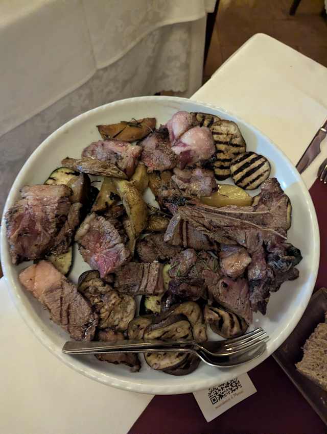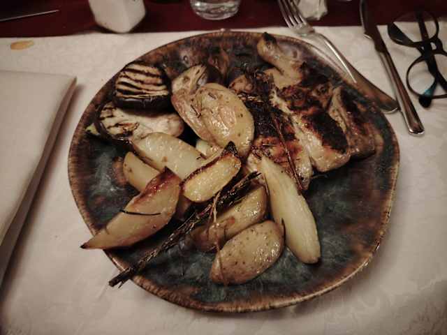 Variazione di crostini tipici: patè rustico di fegatini di pollo, salsiccia scottata e rigatino toscano