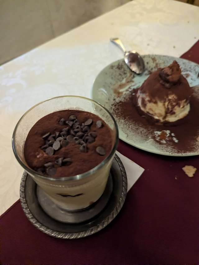 Tiramisù con crema al mascarpone, riduzione di caffè, crumble di cantuccini toscani fatti in casa e gocce di cioccolato fondente