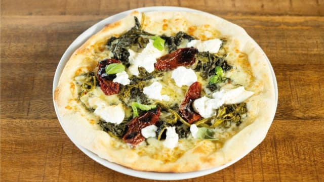 Pomodoro san marzano bio, mozzarella filante, salame piccante