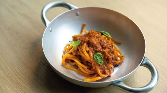 Bigoli freschi al pomodoro san marzano, basilico e olio evo