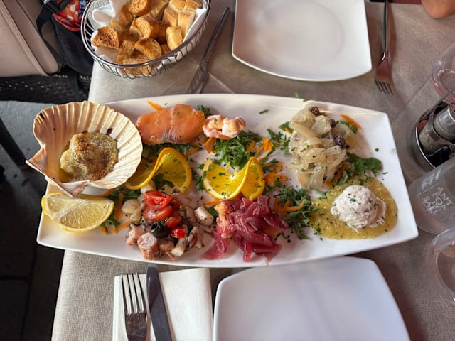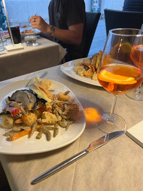 9.5/10Nice place, tasty aperol spritz. Fish was fresh, a little salty for me, waiter works quick