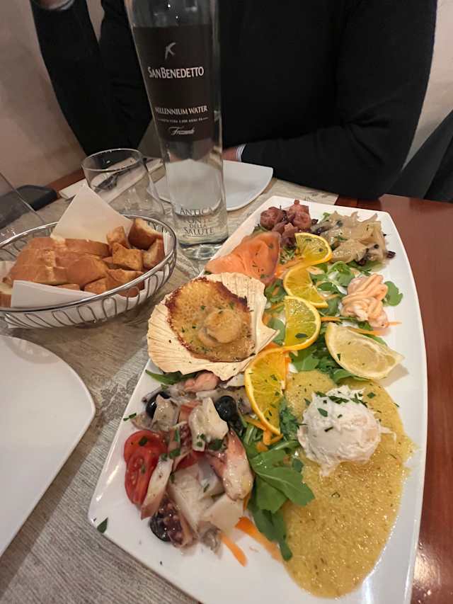 8.5/10Service was good. Located in a quieter part of Venice with tables on the street and inside. Food was good. We had the seafood spaghetti, chicken and mushrooms, and pizza. Creme Brulee was really good. With the 50% discount it made the meal well worth what we paid.