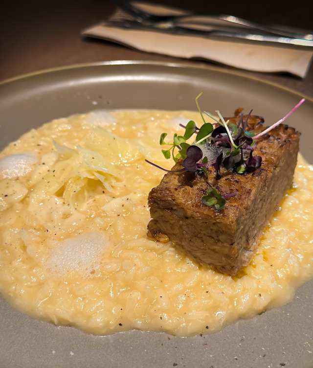 - Carpaccio de pies de cerdo, mayonesa de puerro, piñones, manzana, aceite de romero