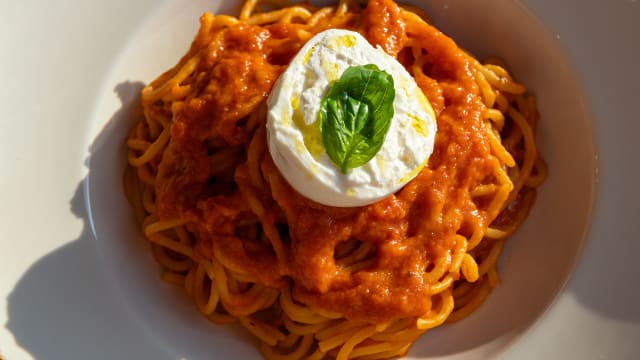Al sugo di pomodoro e basilico con burrata