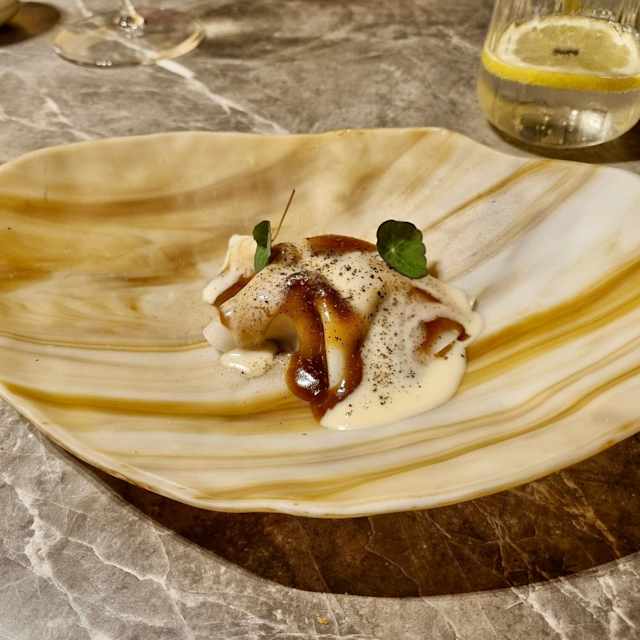 - Sepionets a la brasa en salsa bruta con alcachofas asadas