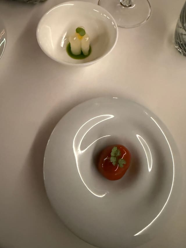 - Spaghetto freddo, branzino pomodoro verde e pistacchi