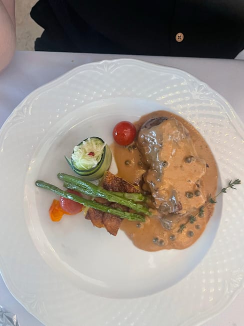 10/10Excellent service together with great food at fairly reasonable prices - recommend the salmon in pastry, leg of lamb, beef fillet and choux bomb dessert