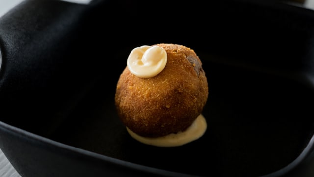 - Farinheira frita com maçã caramelizada e redução de vinho do porto