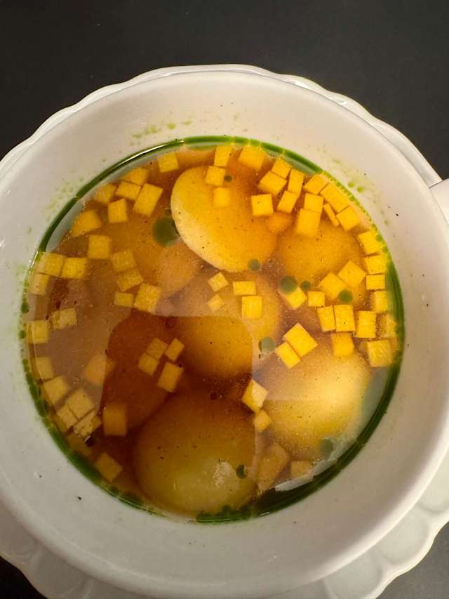 - Uovo 63°, spuma di ortiche, ravanelli e formaggio fatulì