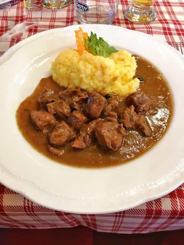 - Gnocchi di patate al ragù di cervo su fonduta di malga