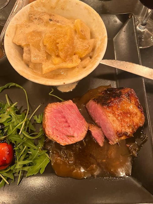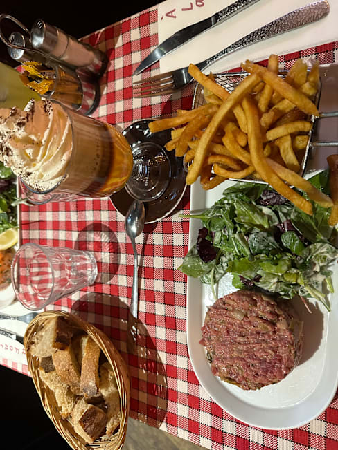 9.5/10+2We were initially seated in a corner, which felt a bit off, but when we asked to move to a window seat, the staff warmly told us to pick any spot we liked, much appreciated! The steak was slightly tough but still enjoyable. I especially loved the salmon tartare. It was super light and fresh, and the sweet potato fries that came with the main were delicious.