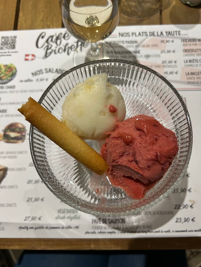10/10The staff work really hard to make sure everyone has a good meal. We liked our lunch of sausages and goats cheese salad so much we booked to have dinner there 2 nights later. The veal in mushroom sauce was excellent. They serve peanuts with the drinks and a carafe of water and bread if you want it. It has some indoor seating too. Highly recommended!