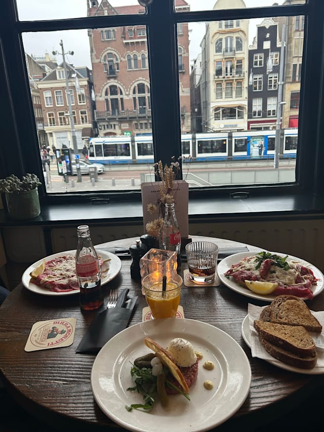 10/10Best place got drinks, lunch, snacks and diner. Best and nice service in Amsterdam. If you visit amsterdam you have to visit. Near all things the city . Love the atmosphere.