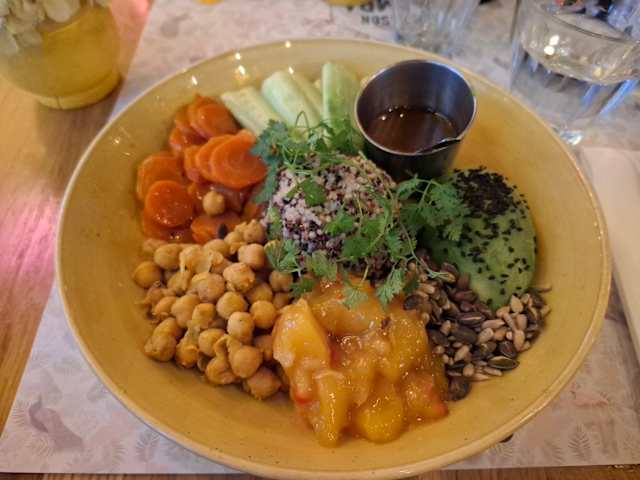 6/10This is one of those cafe's that has all the fake flowers for social media posts. The staff is nice if not a little scattered in our case. Food was fine.