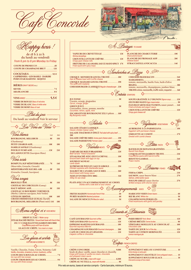 8/10A classic French Bistro experience just a short walk from the Musée d’Orsay. Perfect for a lunch or dinner - good menu selection and everything we ordered was delicious.