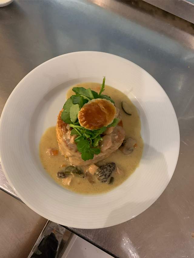 - Sauce au vin, carottes confites, purée de pommes de terre