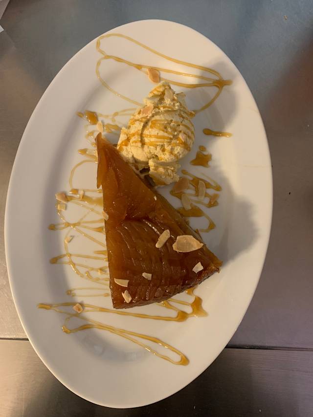 - 2 Boules café, 1 boule vanille, sauce chocolat, chantilly, amandes