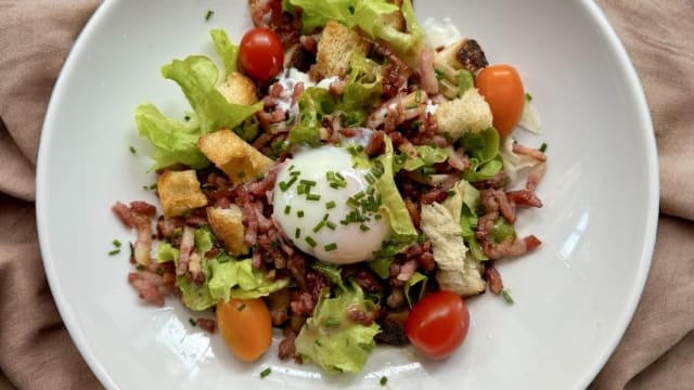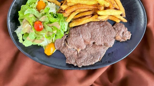 Assaisonné selon l'inspiration du chef, accompagné de frites et salade.