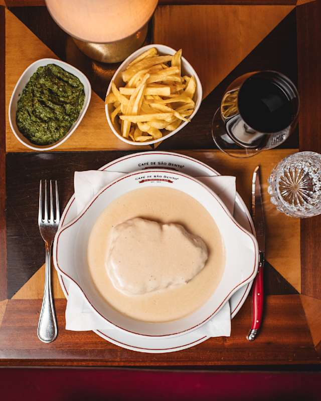 - A mesma receita há 40 anos. Com molho à café de são bento, inspirado no bife à marrare, acompanhado de batatas fritas aos palitos