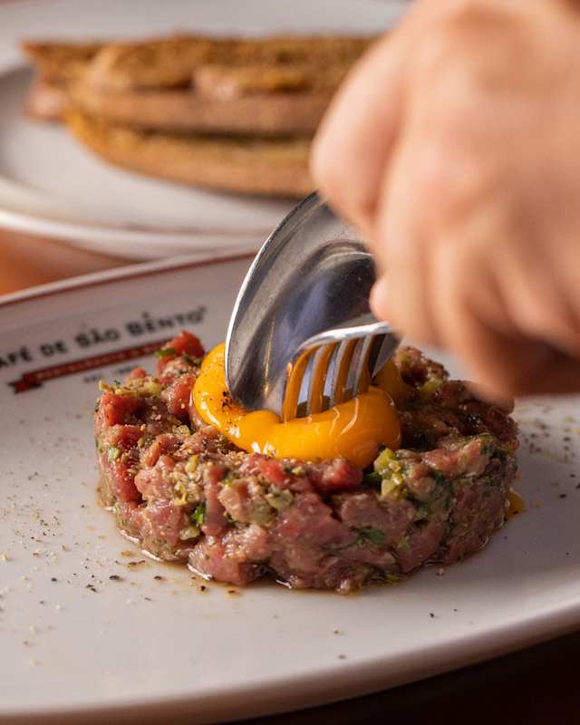 - Lombo de novilho picado, temperado como manda a tradição, servido com tostas